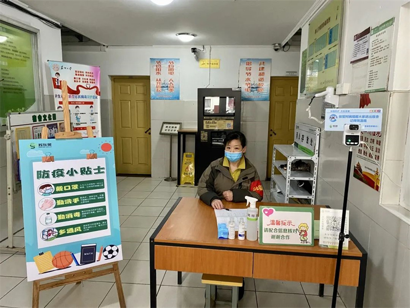 阳澄湖校区宿舍物业服务部根据学校要求及校区自身情况加强疫情防护相关工作,开放宿舍楼,值班员、保洁员每天对公共部位进行消杀,宿舍门厅内设有防疫物资、防疫贴士等,提醒学生进出测量体温、做好个人防护。