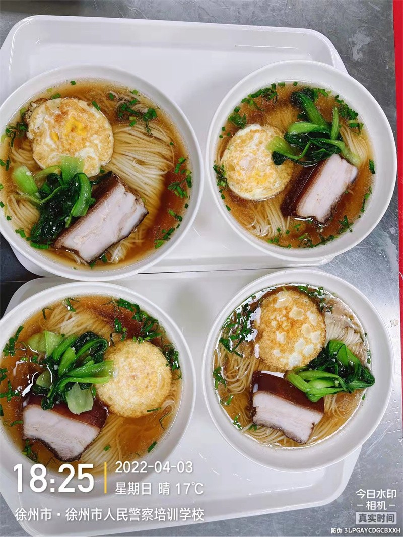 在警校项目点,在项目经理陈瑛的带领下,大家在忙碌中求创新;在做好疫 情防控的各项工作的同时,大家在思考如何让干警们吃的饱的同时吃得好、吃的开心,见到干警们工作压力大,警校食堂特意准备了苏式汤面,用苏州味道为公安干警们改换口味,调解工作压力。