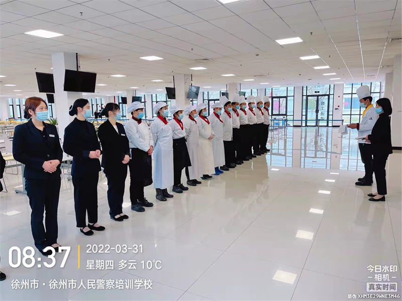 得益于苏州213疫情的防控工作经验,项目及时与甲方沟通,动员员工留宿项目;徐州公安联合项目负责人沈渠以身作则,在形势尚未明朗时,果断留宿项目,24 小时值守;在封控前餐饮条线所有人员已居住在项目上,保障支队一日三 餐的正常开餐。在保安条线、保洁条线,基本都是本地员工,受疫情封控影响减 员较严重。项目根据实际情况,排定出最低保障人数,动员员工随时做好留宿项 目保障运行的准备。