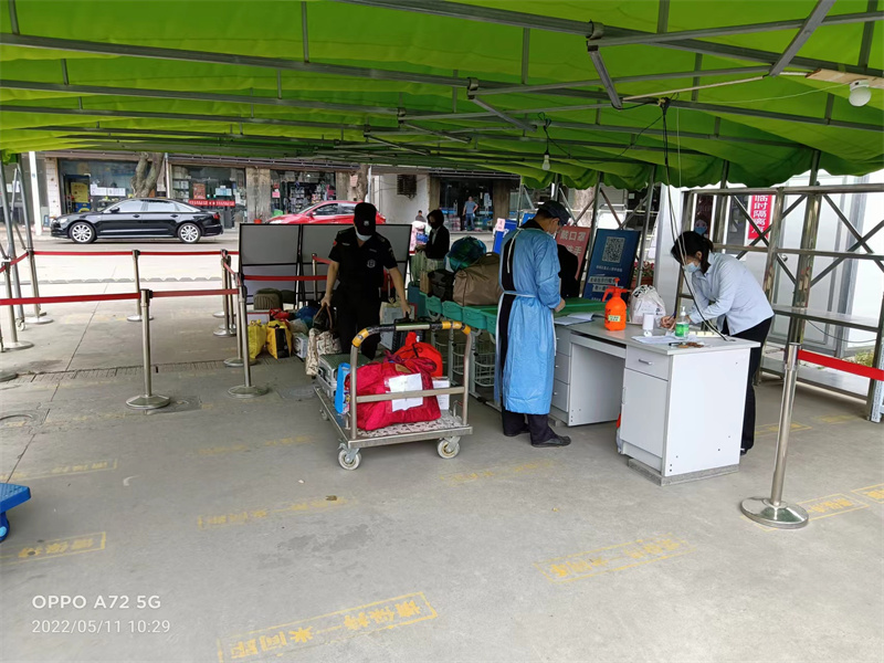 在全国上下抗击新型冠状病毒感染疫情的战役中,有这么一群人他们虽然没有奔赴抗疫前线,但是他们的默默坚守和付出,筑起了一道安全防护线。他们是最美丽“逆行者”物业人。2022年5月11日又是连续封闭快2个多月黄埭中学高三学生家长送物资进出学校的日子。一大早,咱们可爱的东吴物业员工都朝气蓬勃,各个都整装待发,辛勤、忙碌、紧张的后勤工作因为他们而顺利的进行着。东吴物业的后勤者们付出了辛勤、艰辛的劳动,他们的汗水不仅滴落在物资缓冲点上,还滴落在在场家长们的心里。一天之中,他们一直在为物资安全进出学校顺利的开展而奔波忙碌着!