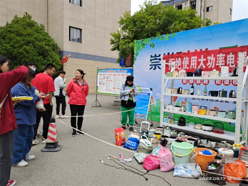 为进一步消除学生宿舍使用违章电器带来的安全隐患,加强宿舍管理,推进大学生素质教育等方面的发展,从思想上增强广大学生的安全防范意识,共创安全、和谐的宿舍环境,更好的构建和谐校园,突出宿舍安全对文明宿舍的意义,学生公寓在项目经理蒋坤慧的安排下举办了“拒绝使用大功率电器,从我做起”的主题展览活动。