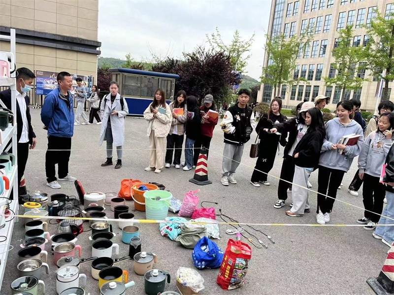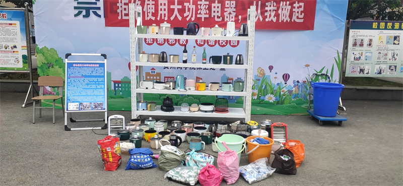 此次的教育活动集中展示了在日常安全排查中查获的烧水壶、电锅、烤火炉、蒸蛋器、卷发棒、酒等违规及违禁物品。