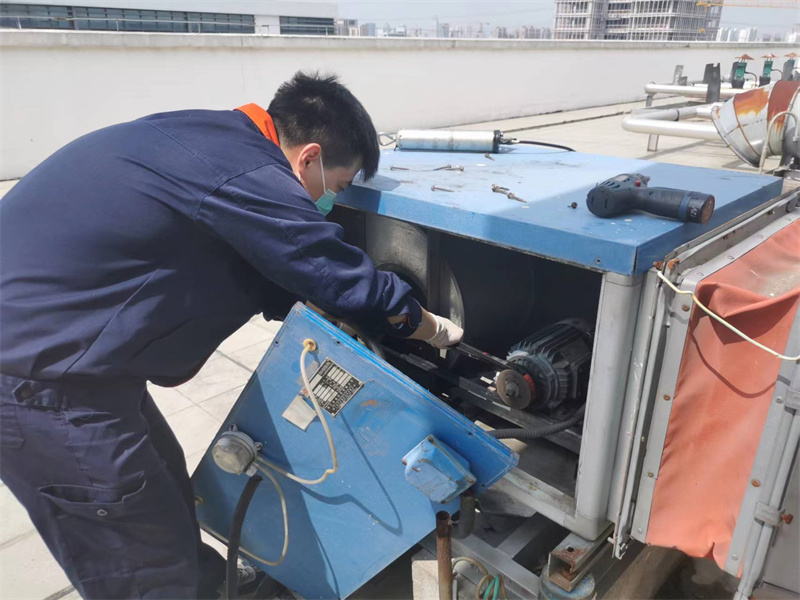 随着疫情结束,AB楼解封即将投入正常的运行,空调班组对各楼顶层的风机展开逐一排查,更换皮带、加油润滑,并更换楼层通风口的滤网滤芯,确保在即将到来的盛夏季节,为医务人员和病人营造安全舒适的生活环境。