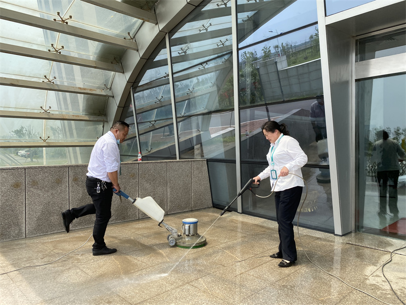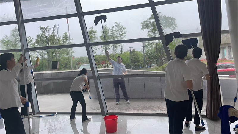 在开荒工作中,针对地面、墙壁、玻璃外墙、厕所、会议室等处进行全面清理。做到分工明确、责任到人。以老带新,管理员们说没想到开荒不光光是自己擦一擦栏杆、刮一刮玻璃这样简单,而是要提前规划部署,做好合理分工,并且不放过每一项细节。