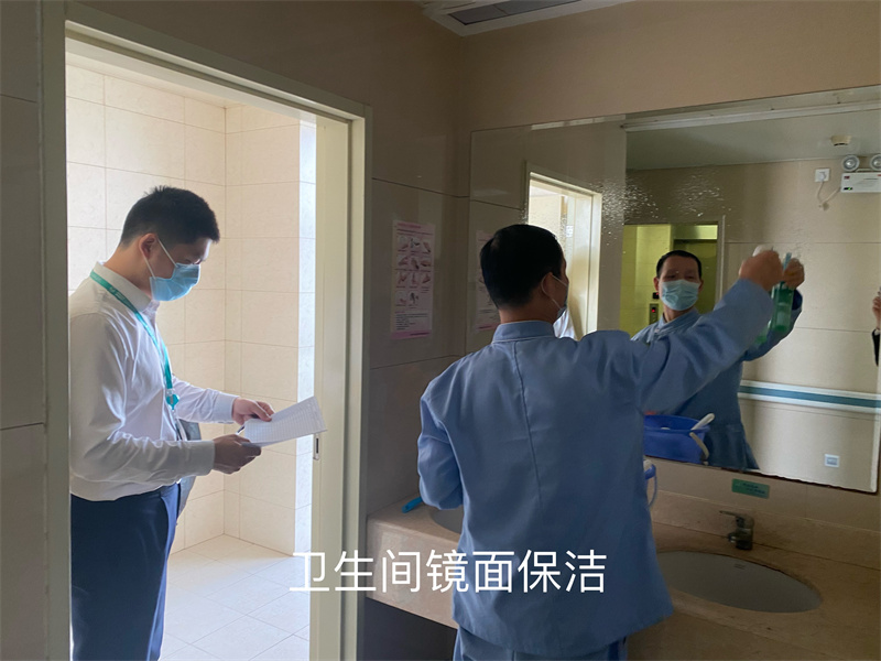 在本次比赛前期准备筹划中,项目须主管培训并示范了工作要领,同时给保洁员培训了卫生间、镜面、终末消毒等清洁的标准及技巧。本次比赛以口述加实操的形式展开,对医院保洁基本技能进行提问,如:消毒水配比、七步洗手法、锐器刺伤等;实操题为保洁工具车摆放规范、卫生间镜面处理等。下午14:30,比赛正式开始(为了不影响日常保洁工作,我们采取轮流比赛制,比完即回到岗位)。在规定时间内,保洁员们按照标准操作实施。参赛人员们满怀饱满的热情,一丝不苟的埋头苦干,汗留下来也顾不上擦。