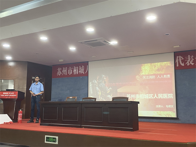 近日,随着天气逐渐升温,电器使用频率增加等一系列因素,火灾防控问题日渐严峻,消防安全成了我们工作生活中的重中之重。2022年6月17日中午12:30,苏东吴相城人民医院项目部全体员工,参加院方举办的“落实消防责任,防范消防风险”培训。
