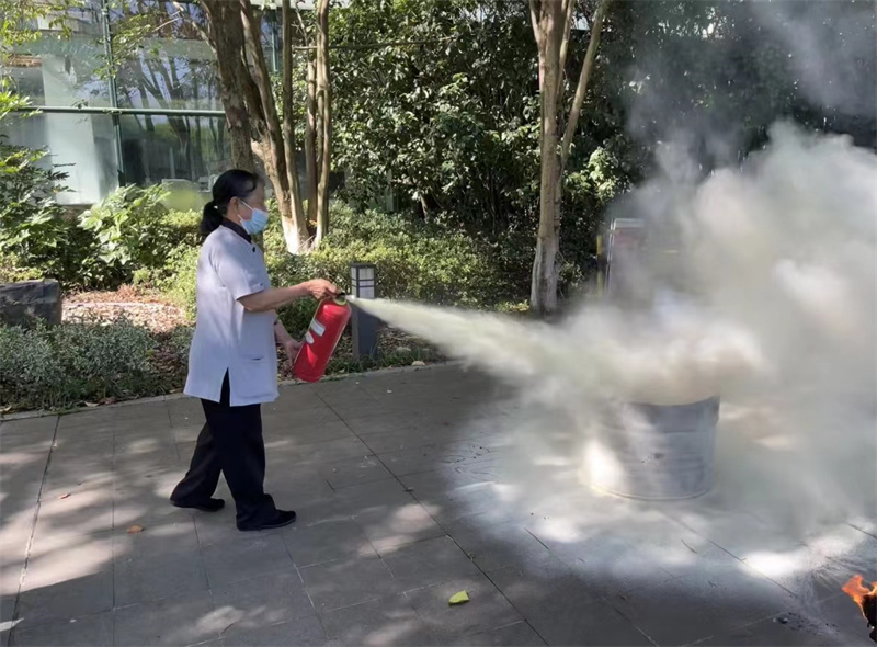 上午八点由保安队长胡国财对消防设施和器材使用方法、技巧、注意事项等进行了详细讲解,并就如何正确使用灭火器进行了现场演示。公文中心员工通过示范学习及现场实操,掌握了初期火灾扑救技能,确保在突发火灾事件中能够快速反应、紧密配合,把消防安全隐患消灭在萌芽期。