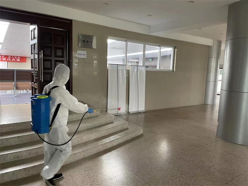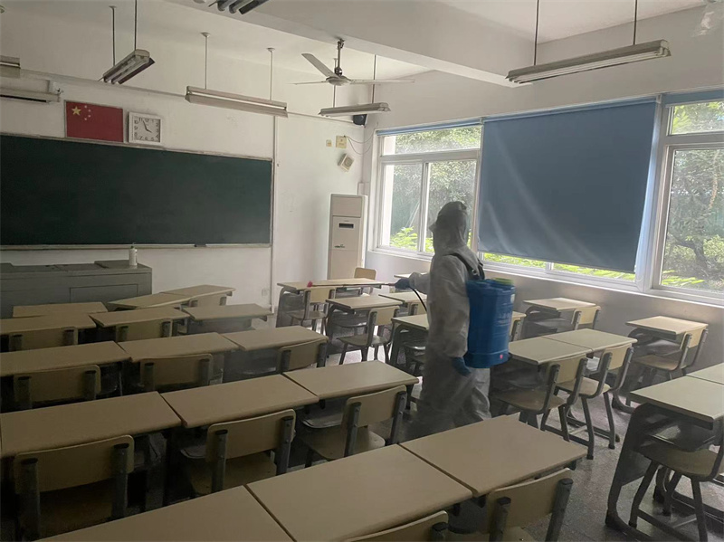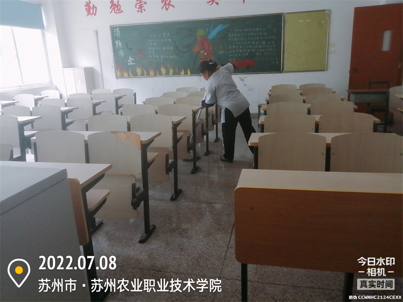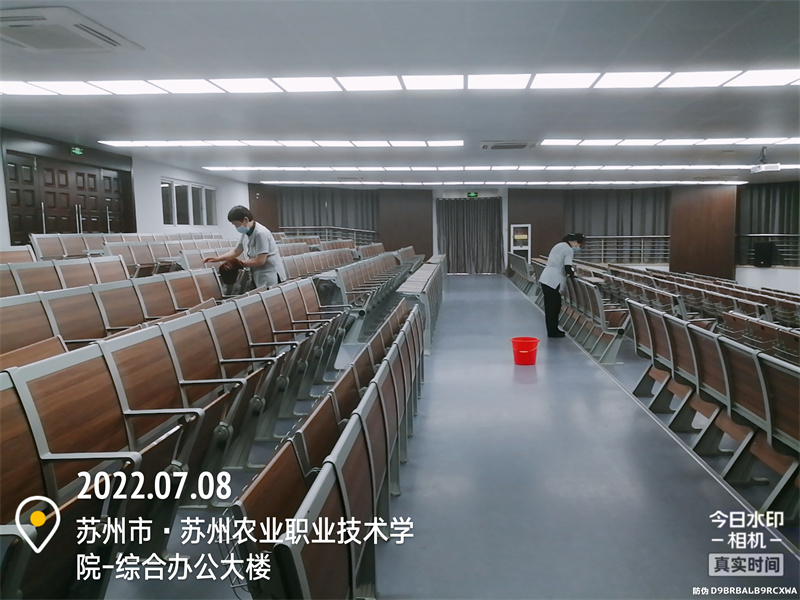 为了做好现场的服务保障,项目提前对和丰楼7间教室、1楼报告厅做好彻底的保洁工作,以整洁、干净的现场迎接竞赛的选手。外场保洁员配合校方转运了几车绿化带闲置设施设备,确保比赛现场整洁、美观。比赛当天中午有200人左右的用餐,安排保洁员在现场做好垃圾的分类、收纳工作。根据疫情防控要求,项目做好现场全面消杀工作,让参赛选手能在安全的校园环境里安心比赛。