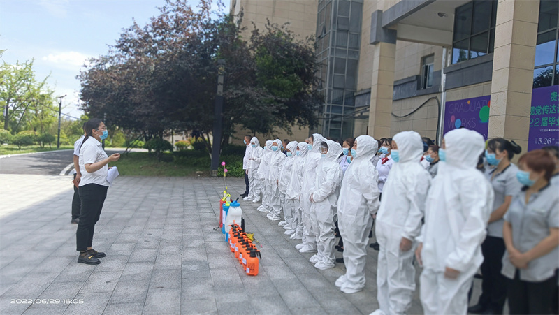 疫情就是命令,防控就是责任,疫情肆虐已长达4年,疫情防控也成为了物业领域最重要的工作,为此,贵州商学院项目由项目经理蒋坤慧组织全体成员开展了疫情防控演练。
