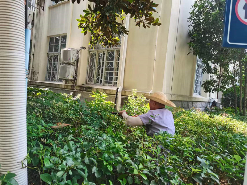 绿化工操作着专业器具修剪、补种、割草等。他们那如桥的脊背,品莹的汗珠,连同那一抹被夕阳涂满釉彩的背影,构成了一道最平凡而又美丽的风景。他们用勤劳的双手为业主创造于净整洁的生活环境。