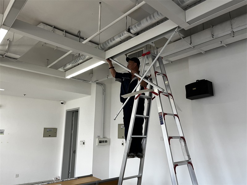 提前对各考场室内设施设备进行排查,包括:教室桌椅、照明、天花板、钟表、窗户、窗帘、卫生间设施等,根据排查发现的问题及时报修跟进,同时联系空调维保单位对楼宇空调设施进行全面检修,确保设施正常运行。