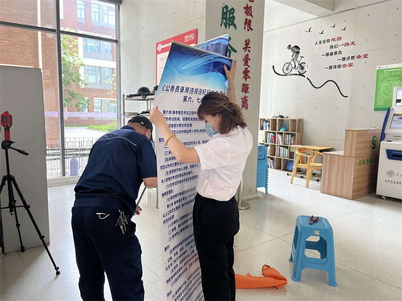考试结束,立即安排专人对公共区域、考试教室进行全面消毒和通风,全力做好疫情防控工作。通过全体工作人员的共同努力,圆满完成了天津市2022年公开招考公务员考试服务保障任务。