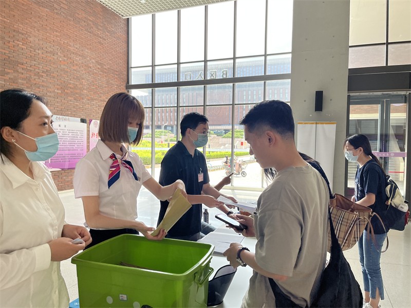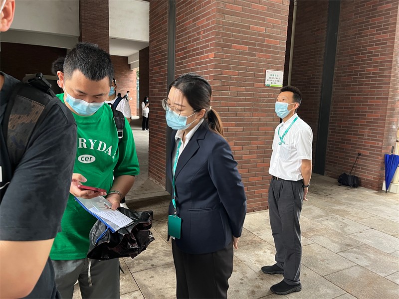 考试保障期间,工作人员提前3小时来到考试现场,加强考前室内消毒、通风,再次强调现场管控流程,检查临时隔离区和考生信息查验场地准备情况,全力做好考生入场秩序维护,逐人查验行程码、健康码、入楼测温,查验48小时核酸检测报告,发现异常情况及时报备考务老师。