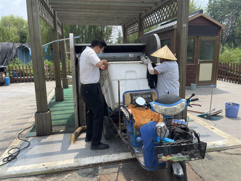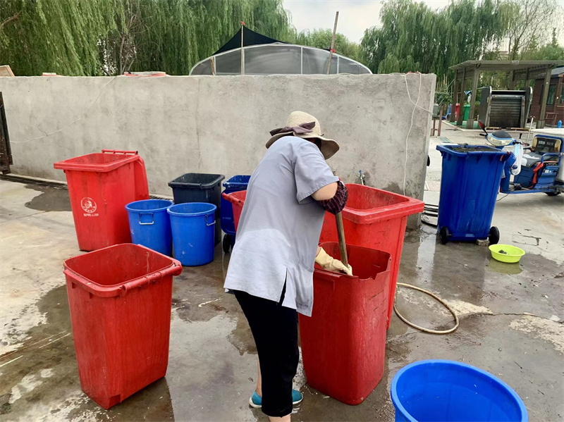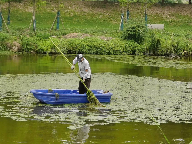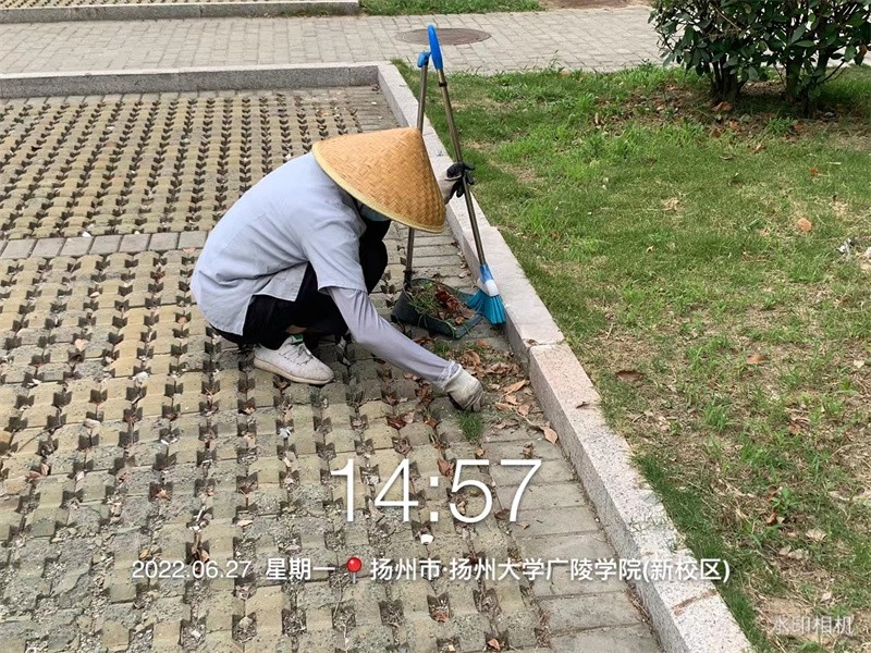 高温天气,各岗位保洁依旧奋战在一线。假期里,校区里仍然有很多学生和工作人员,他们每天除了日常的保洁工作之外,还要清洗垃圾桶、清理河道的水草、清洗外围玻璃以及刷洗校区的连廊等。即使高温天气,保洁工作仍然不可间断。
