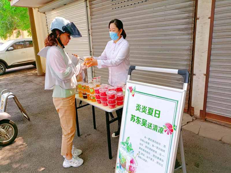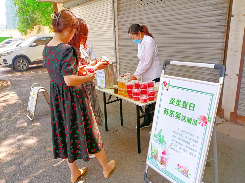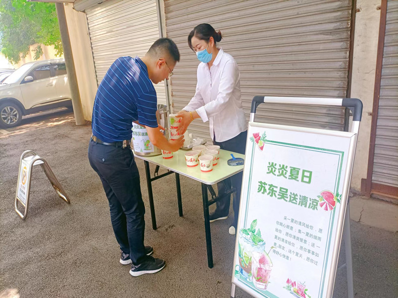 一份份饱含爱心的自制酸梅汤,虽比不上艳丽的鲜花,却有着独特的芳香和清凉,饱含我们对业主满满的关怀。