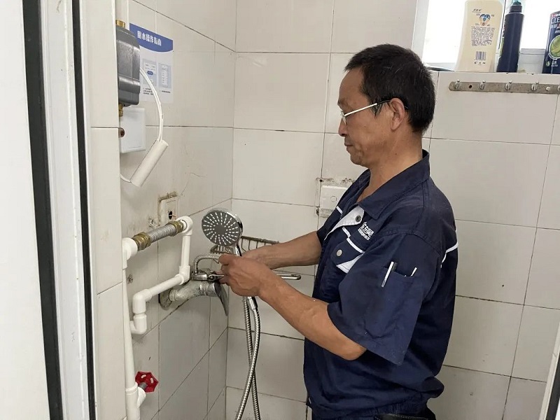 管理员和维修师傅们一起,检查房间内家具、墙面、淋浴、水龙头等设备设施的损坏情况,对于问题及时上报,并安排维修,持续跟进。
