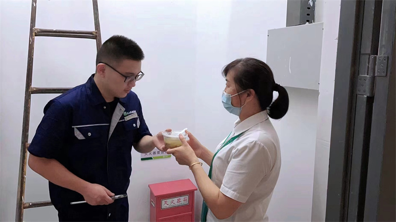 8月4日上午十点多,项目部给员工准备了万金油、花露水、风油精清凉包和冰镇绿豆汤,管理人员到保洁、保安、工程各条线工作现场慰问员工,表达公司对员工的关怀,叮嘱员工注意劳逸结合,严格按岗位安全操作规程作业,做好防暑降温安全措施。