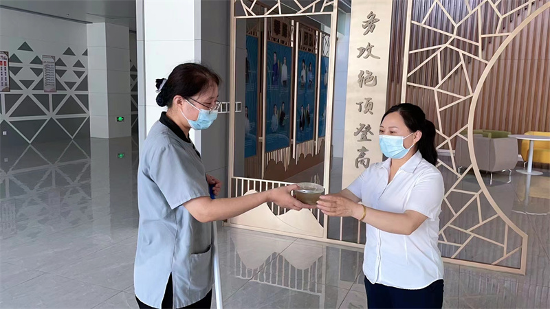 保洁领班郎玉兰慰问室内保洁员江惠珍