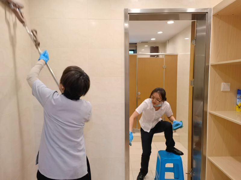 在开荒现场,无论是现场的管理员还是一线员工,都拿出了百分之百的工作精神,全身心的投入到开荒工作中。当然,新项目的进场工作不仅仅于此,像和业主相互熟悉了解、招聘缺少员工、搬运升级现场保洁工具并重新排版布局、整理清扫物业办公室和员工休息室仓库等都是我们进场后迫在眉睫的工作。