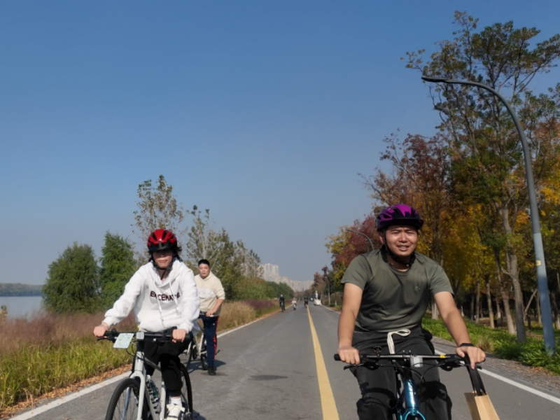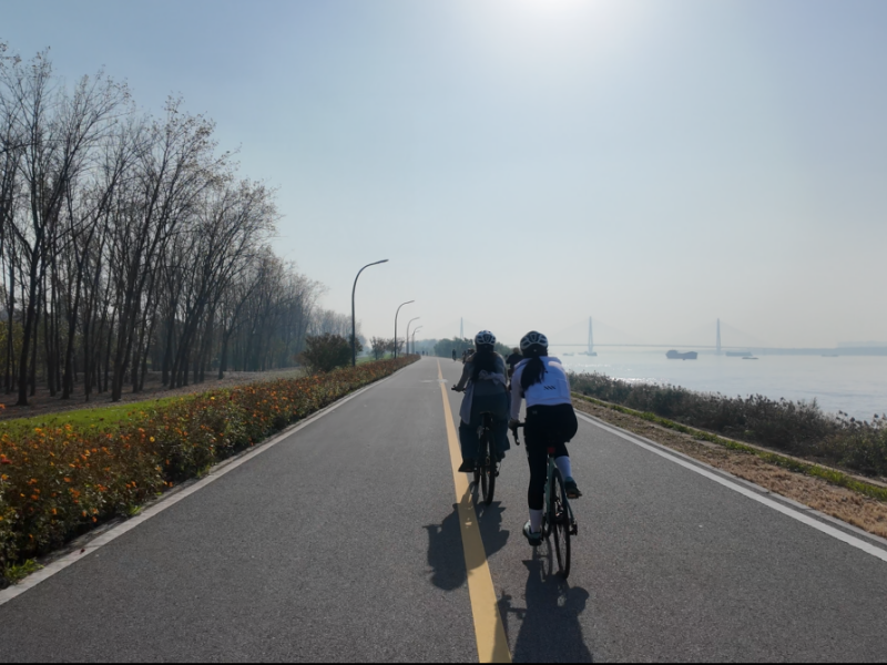 随着出发指令响起,骑行队伍宛如一道流动的风景线,沿着江心洲优美的环岛绿道迤逦前行。同仁们意气风发,车轮飞转,身影矫健。途中,大家时而你追我赶、挥洒汗水,诠释“拼搏”的进取姿态;时而并肩缓行、交流鼓励,彰显“同行”的深厚情谊。江岸风光与团队成员的身影交相辉映,构成一幅动感与和谐并存的精彩画卷,充分展现了东吴服务南京分公司团队蓬勃的朝气与强大的凝聚力。