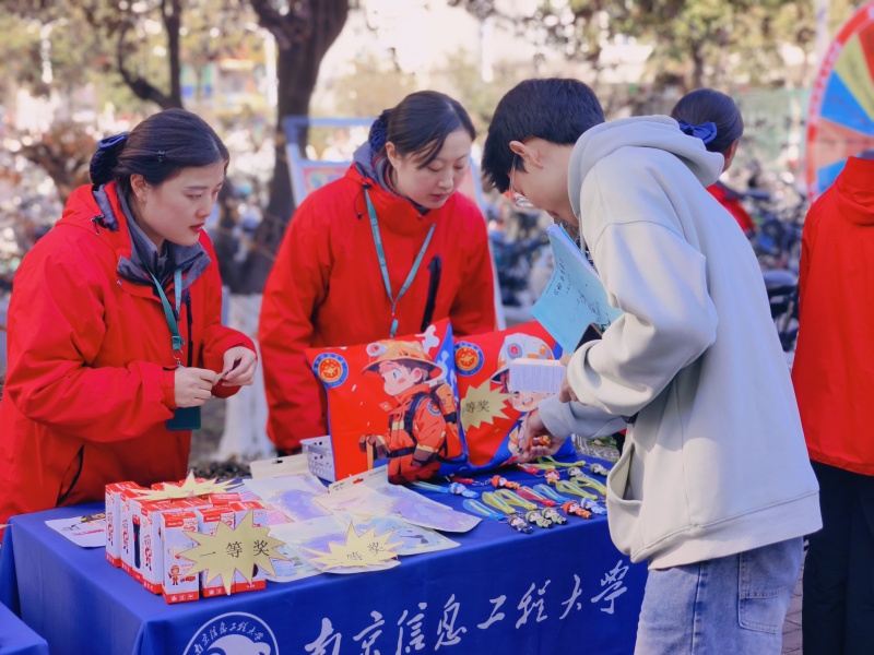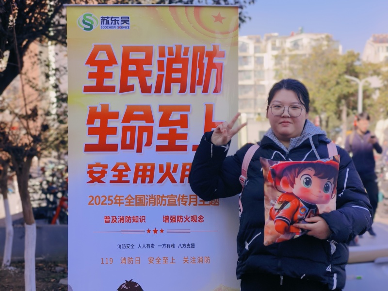 冬韵悄至,安全同行。2025年11月19日,南信大本部公寓项目部以“公寓消防‘童’行,安全‘信’心守护”为主题,在晖园 13-14 栋、文园 18 栋顺利开展消防月主题活动。活动前期,现场精心布设多个互动区域,温馨的展板、醒目的标语与丰富的道具,既营造出浓厚的安全教育氛围,也吸引了众多同学驻足打卡拍照。