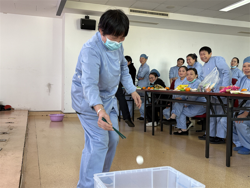 生日会伊始,物业主管须逴明首先代表公司向所有“寿星”们致以亲切的问候和美好的祝愿。随后,轻松有趣的小游戏环节将现场气氛推向第一个高潮。首先进行的“夹乒乓球”游戏,要求队员们用筷子夹着乒乓球接力,既考验耐心又需要团队协作。紧接着的“逢七过”游戏,大家反应敏捷,笑声和掌声不断。简单的游戏不仅带来了快乐,更拉近了彼此的距离,展现了保洁团队活泼、团结的另一面。