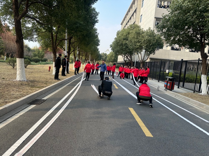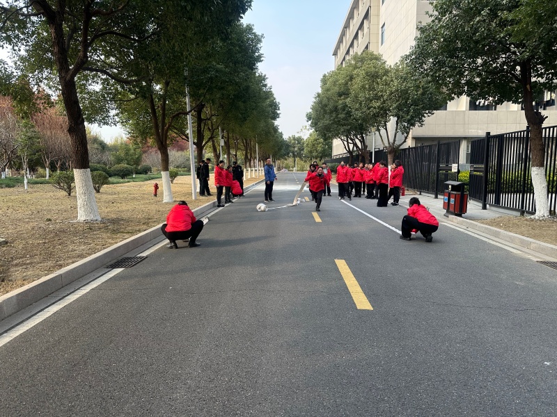 实操环节中,全员分组进行演练。大家严格按照讲解流程,依次完成灭火器灭火、消防水带连接与喷射等实操科目,动作规范、配合有序。现场指导人员针对操作中出现的问题及时纠正,确保每位人员都能熟练运用消防器材,切实提升应急处置能力。整个演练过程组织严密、节奏紧凑,从理论讲解到实操演练环环相扣,达到了预期效果。