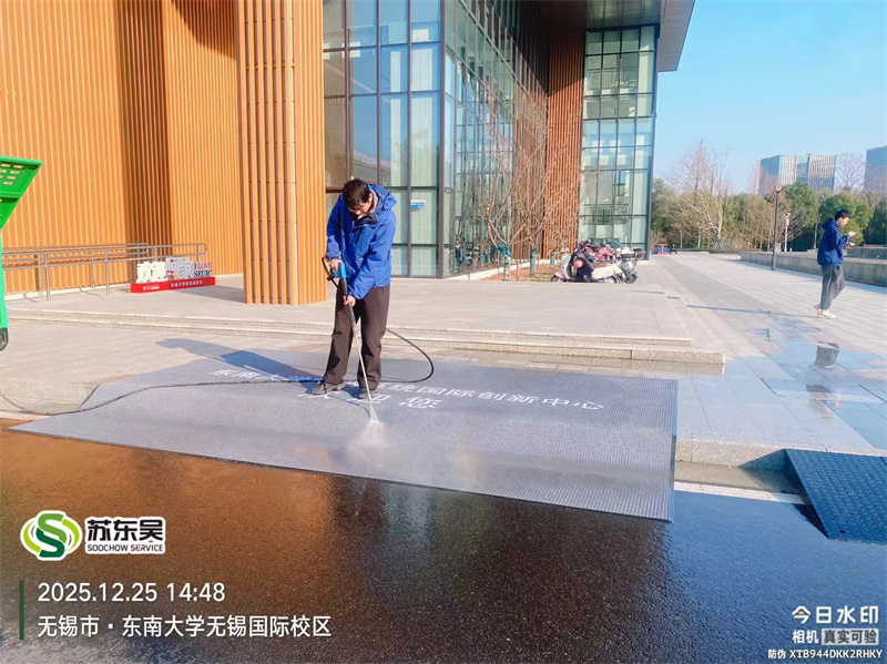 针对参访重点微纳实验大楼,保洁团队提前介入,严格遵循预定参观路线,对大厅、走廊、玻璃幕墙及地面等区域进行了无死角的深度清洁,确保每一处细节都光洁如新。