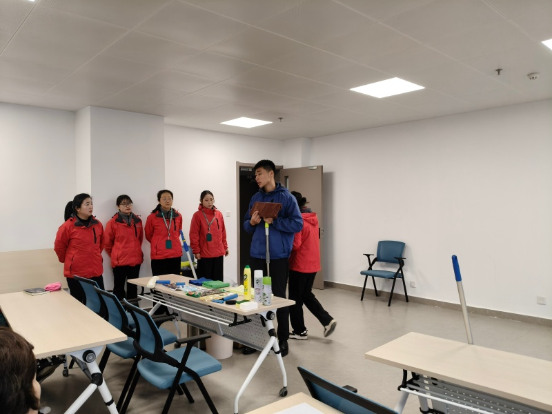 南京分公司保洁条线负责人杨坤霖牵头专项培训,协同王敬云、张诚伟、汪笑等核心骨干全员到场,这支以“标准高、实战强”闻名的星级团队,凭借丰富的行业经验和专业的服务水准,一亮相就点燃了保洁阿姨们的学习热情,大家对这场培训充满了期待。