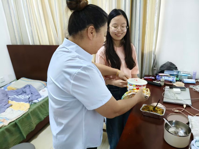 她们是学生生活里最暖心的“贴心人”,于细微之处,把关怀悄然传递。忘带钥匙的同学,总能第一时间得到她们的帮助;衣物不慎破损,她们会顺手缝补妥帖;身体偶感不适的学生,更能收获她们及时的照料与关怀。她们还会主动提醒天气变化,遇上突如其来的阵雨,晾晒在外的衣物早已被她们细心收好、妥善存放。