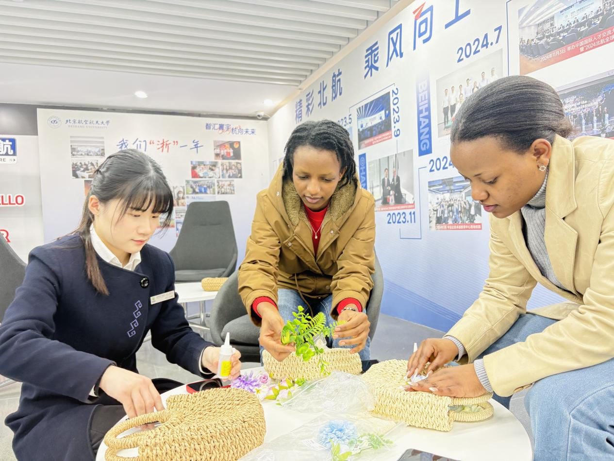 3月6日中午,北航杭州国际校园师生服务大厅里欢声笑语、春意盎然。北航国新院项目组织的草编包DIY活动,吸引了全校100余名师生代表热情参与。其中来自中法青春交流营项目的30余名法国学生也加入进来,让这场传统手工艺体验更添跨文化韵味。