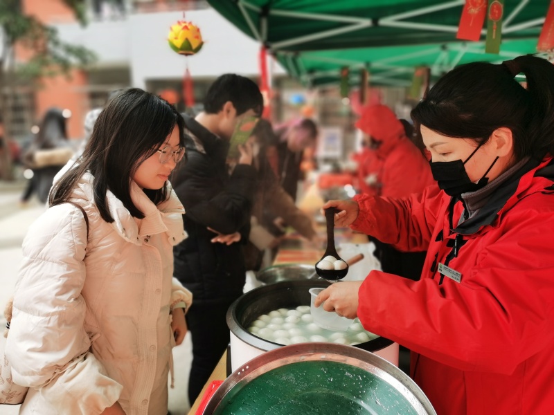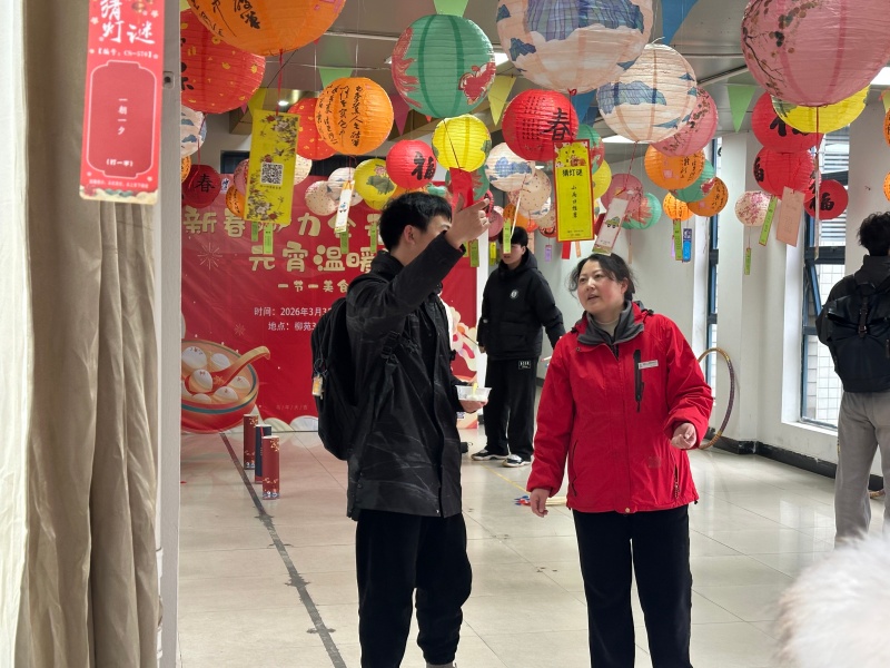 活动全程,宿管阿姨们分工协作、忙而有序,有的在操作间精心煮制汤圆,让热气腾腾的甜汤驱散初春的微凉;有的在现场细心维护秩序,引导大家有序参与各项活动,用贴心的举动为整场活动保驾护航。师生与宿管人员三方携手互动、其乐融融,平日里的宿舍区,此刻化作了充满温情与烟火气的大家庭。