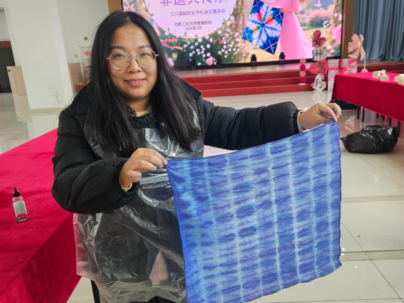 春意渐浓,芳华初绽。在三八国际妇女节来临之际,合工大宣城项目以非遗扎染为媒,为校园女教师与女学子献上最深情的祝福。这场传统美学之约,将布料与色彩化作桥梁,让师生与工作人员在每一次折叠与捆扎中心意相通。在斑驳的光影与斑斓的色彩间,不仅邂逅了古韵新风,更让校物共建的温情,随春风悄然生长。