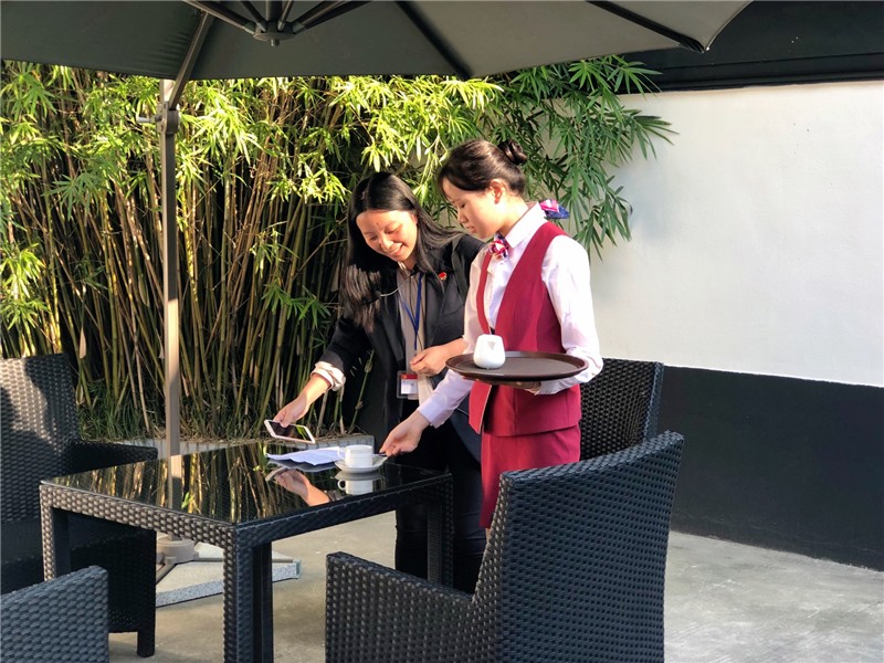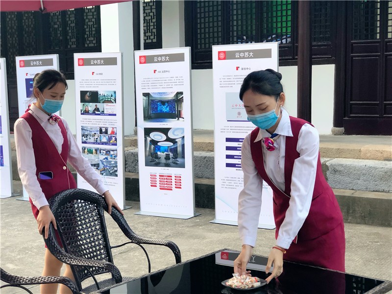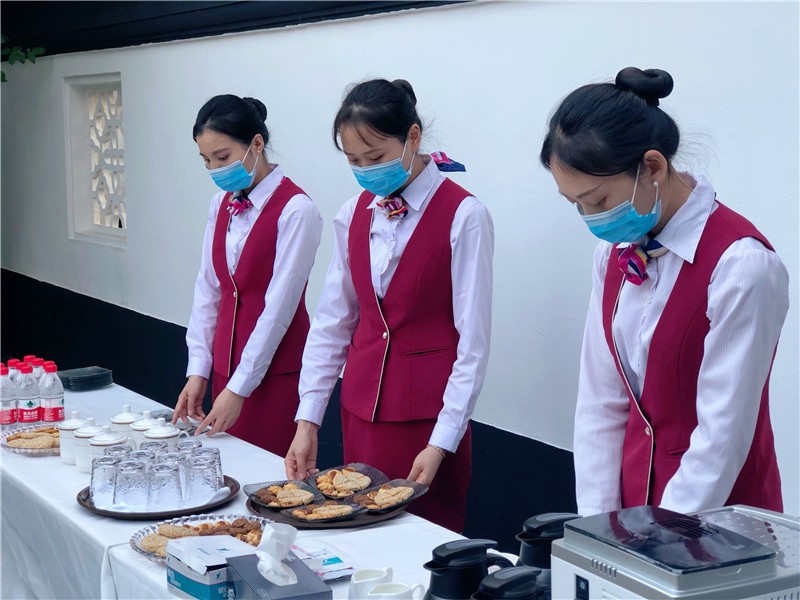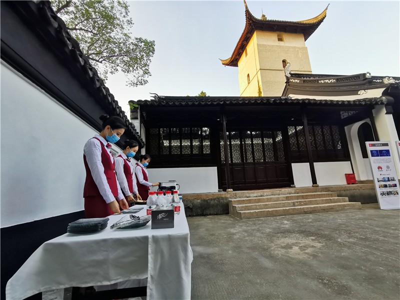 红楼会议中心客服团队亦不会缺席每一场会议。在历史悠久、四角起翘,宛如鸟翼,翩翩欲飞的方塔内(文星阁)布置了一场精美的茶歇,中与西的结合、新与旧的碰撞、美味与科技的交织,使在场的客人都体验了一次在苏大的“慢生活”。