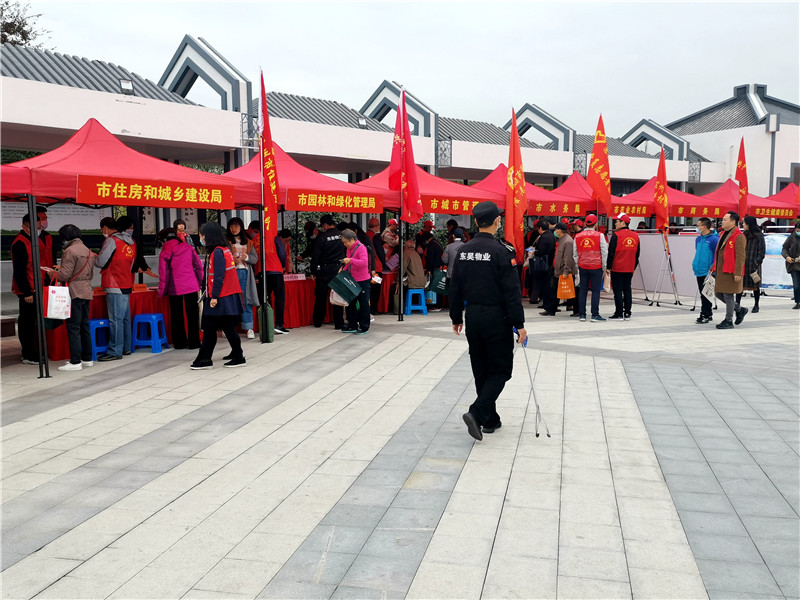 桂花公园项目部在活动前一天并对前期进场搭建活动的广告公司进行监督。在活动当天提前安排保洁对公园广场、大门口区域进行细化保洁;在公园大门口增加了2名保安确保公园车辆和人员进出的秩序,同时也在活动现场增加了2名保安维持现场秩序。并在离活动区域较近的乐园卫生间增加一名保洁员保障卫生间卫生和在活动区域增加2名保洁员保障活动现场环境。