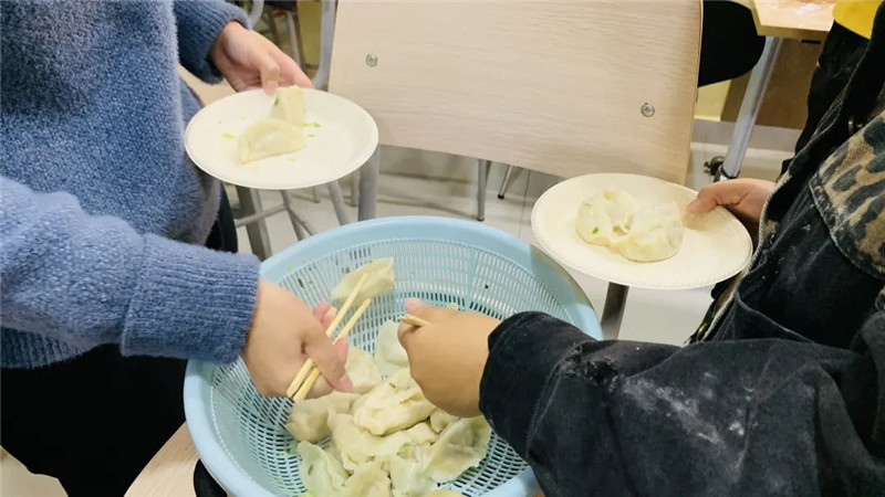 吃到自己做的饺子,同学们纷纷高度评价,“色香味俱全”是大家的一致评价,每一锅饺子几乎都是刚做完就被抢得一干二净。吃到饺子的同学们都是喜笑颜开,脸上洋溢着抑制不住的喜悦和成就感~