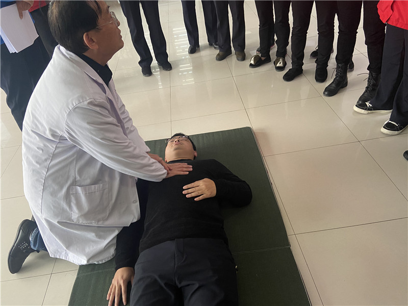 同时还邀请朱院长现场演练如何做心肺复苏,首先需要有一定的判断意识,然后进行求救并检查呼吸道是否畅通以及进行人工呼吸和胸外按压。