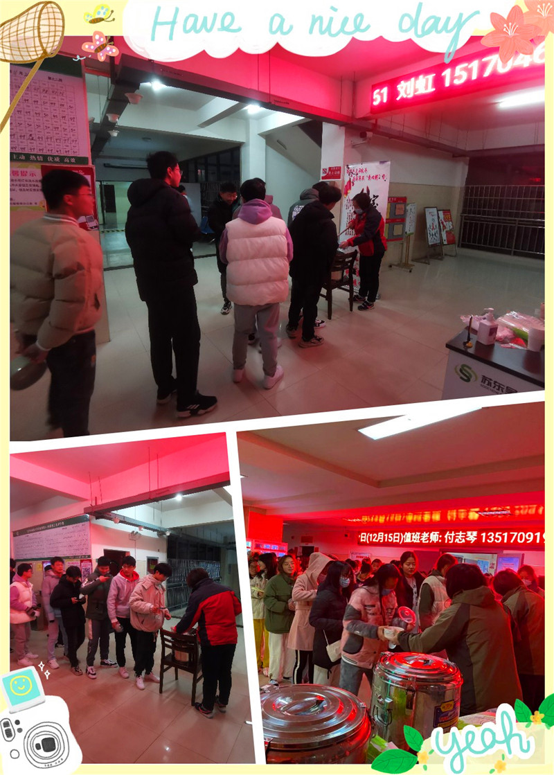 2020年12月15日,南昌第一场大雪预示着真正严寒的到来,伴着漫天的雪花,江西中医药科技学院项目本着“主动,热情,优质,高效”的服务理念,关爱学生,从心出发,在学生公寓5,6栋大厅举办了一年一度的暖心粥活动。