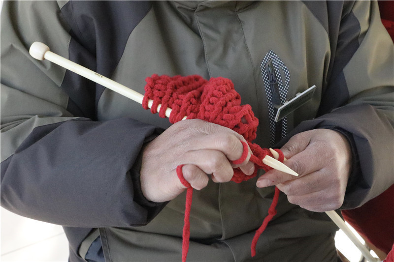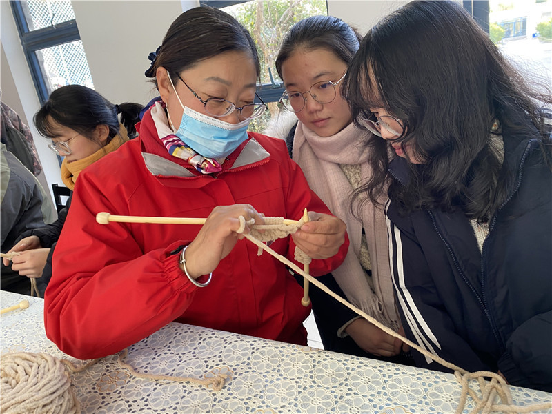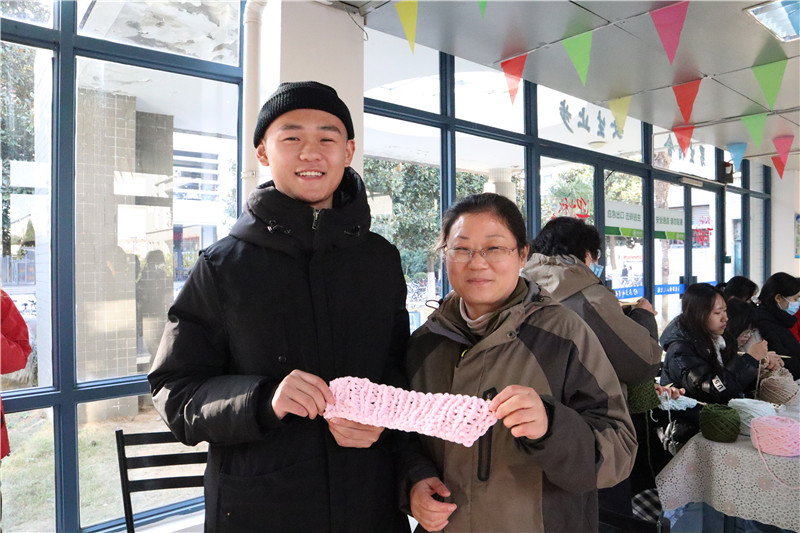 同学们在认真学习后,开始动手尝试,遇到不懂的就及时请教阿姨,很快就能上手了。有位同学说,这条围巾打好之后要寄给妈妈;有位同学说送给宿管阿姨;有的同学微笑着说这还是个秘密……