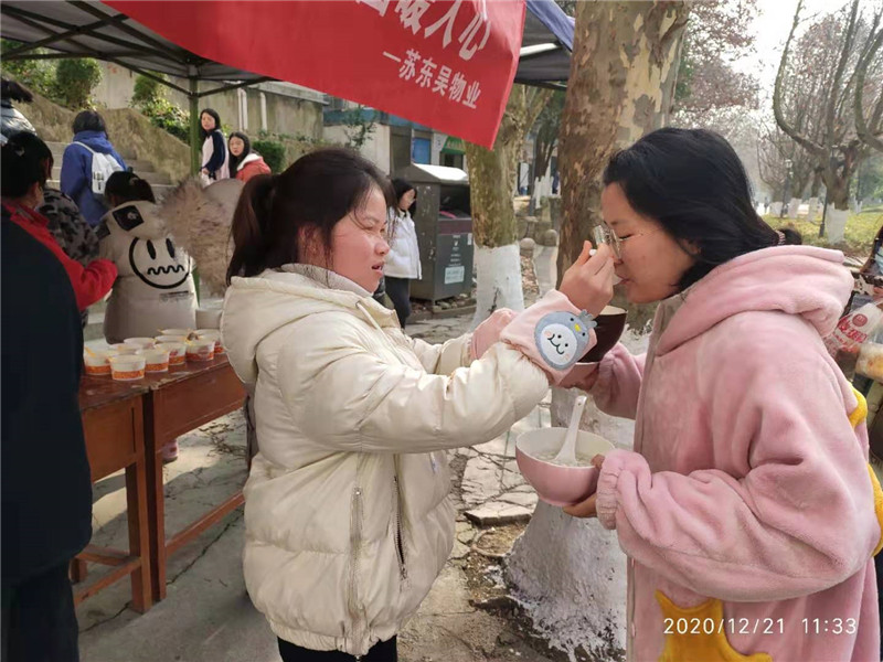 汤圆汤圆,团团圆圆。冬至,意味着寒冷的冬天真正来临,冬至是农历二十四节气中一个非常重要的节气,也是中华民族的一个传统节日,俗话说,冬至大过年,为弘扬传统节日文化,营造浓厚的节日氛围,创造温馨和谐的校园环境,2020年12月21日上午9点,贵州民族大学花溪校区项目在项目经理马晶的带领下,各条线主管及管理员分别在十号公寓、CD栋、融通公寓布置三个点为同学们煮上热气腾腾的汤圆。