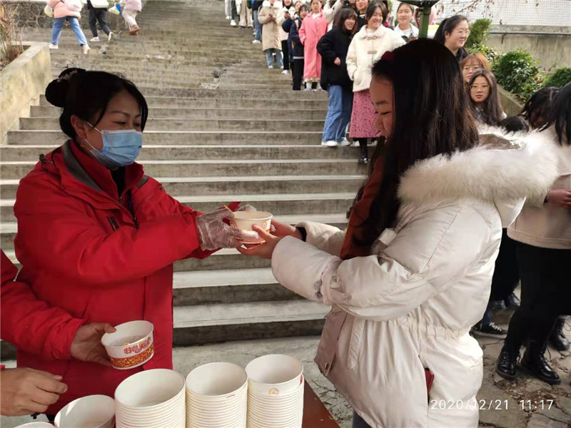 今天一早,我们物业工作人员就纷纷去到各自负责的岗点上去架起锅炉、摆好桌子、放好碗和勺子,提前烧好开水,等到中午学生快放学了就开始煮汤圆,叮当叮当......中午12点整,下课铃声响起,一碗碗热气腾腾的汤圆慢慢出锅咯,香气四溢,同学们井然有序地一个挨着一个排好队,双手捧着我们的工作人员给盛好的汤圆,同学吃着热乎乎的汤圆,一个个脸上都扬起了幸福的笑容,就像今天的天气一样,暖暖的!