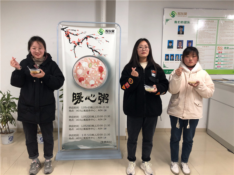 冬至是冬天真正来临的日子,为了让所在院校的同学们感受浓浓的节日氛围,让这个寒冷的冬天增添一丝温暖,南通物业三分部早早的就准备好汤圆和暖心粥以供学生们下了晚自习可以尝到一碗热气腾腾的“汤圆粥”。