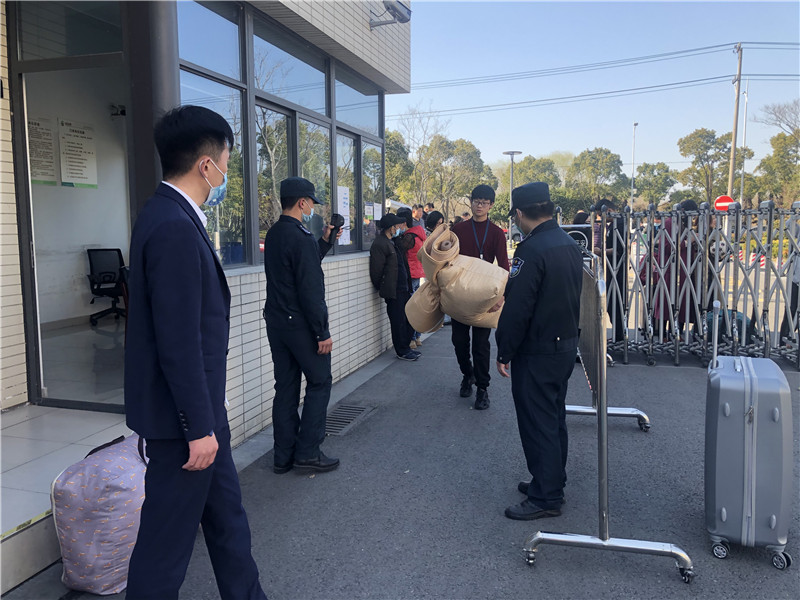 根据校方工作安排,2月18日及20日为学生返校日期,物业办收到通知后提前做好相关准备,打印并公示调整后的宿舍名单、准备小推车及电动三轮车帮助学生搬运行李。学生返校当天,西门岗作为唯一入校通道,执勤人员提前备好测温枪,隔出进校通道并站岗查验入校学生苏康码、检测体温;管理人员维持现场秩序,帮助学生搬运行李,并对同行家长通过劝谏、引导等方式,确保其在校外等候。