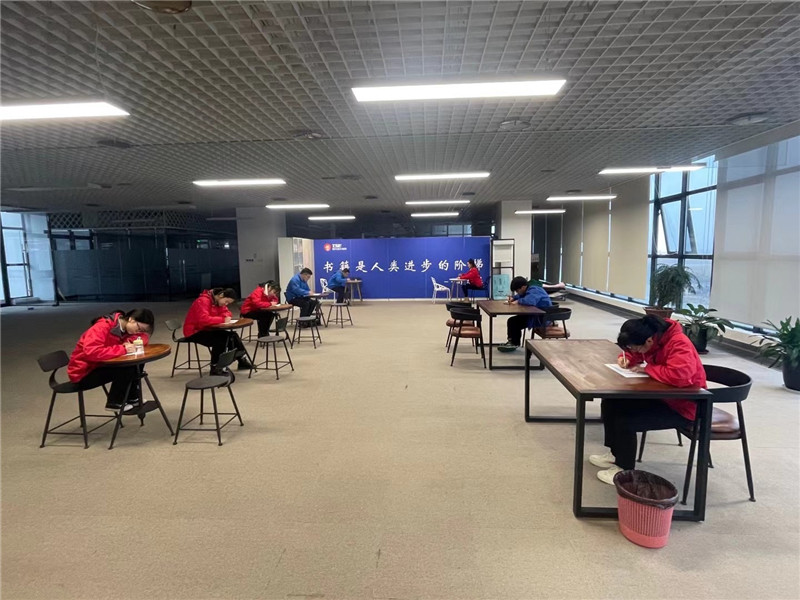 秉着“公平、公正、公开”的原则南区项目、北区项目一起连线如皋北外项目共计13人大家一起开考时间限制为一个小时,在考试现场大家都专心地做着自己的试卷做完之后再进行检查。