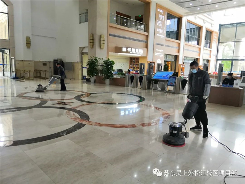 保洁条线坚持常态化疫情防控措施,每日坚持对行政楼、教学楼、公寓楼公共区域进行2次消毒保洁。完成教育会堂、1教楼、4教楼、5教楼、配电房地面清洗,图文中心地面保养,行政楼喷泉清洗。