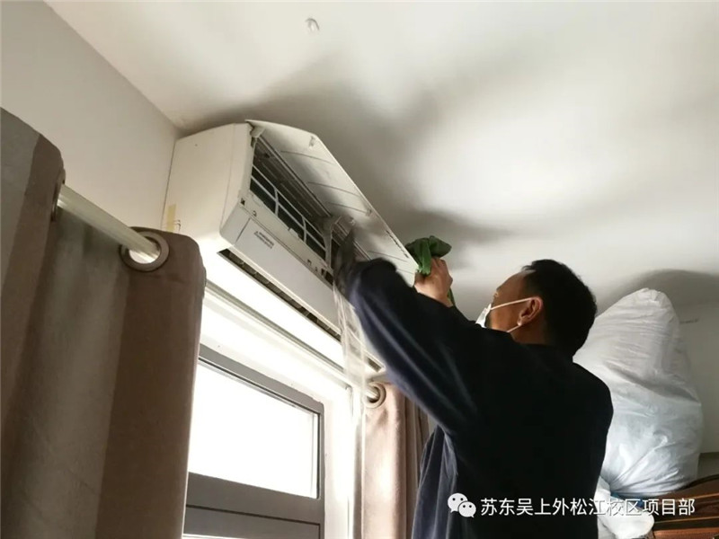 工程条线利用假期时间对松江校区办公室、教室、学生公寓空调滤网进行清洗消毒,共计2742间;更换损坏照明500只;完成校区生活水箱清洗消毒;完成日常维修273项;确保新学期校区设施设备完好有序运行。