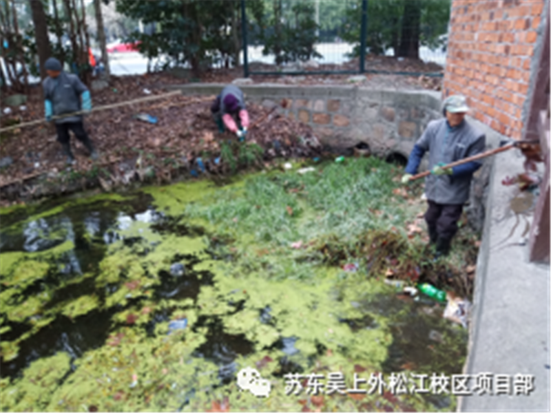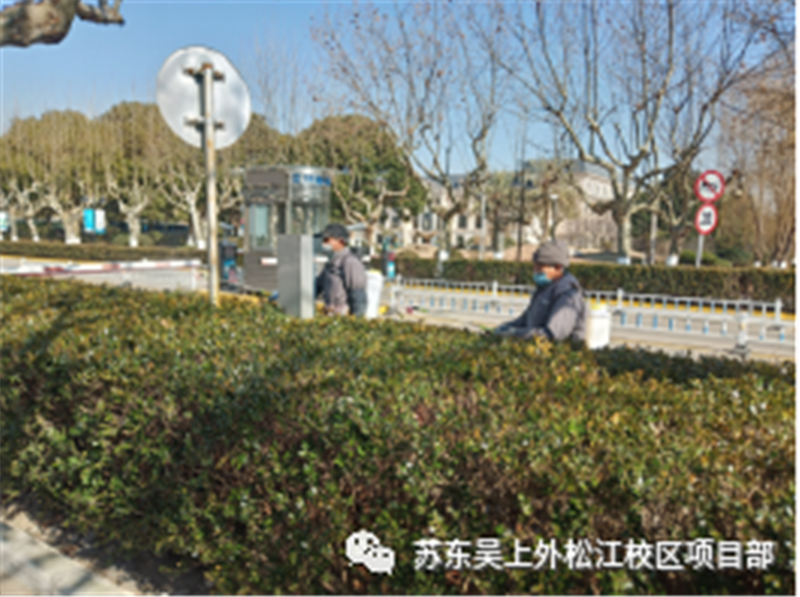 为了给广大师生提供一个优美的校园环境,绿化条线对校园环境进行整治。完成冬季树木干枯枝修剪、室内绿植养护、河道清理打捞、草坪落叶清理、花灌木施肥;教学楼周边及内庭枯枝落叶砖头石块清理;各楼空调外机出风口绿篱修剪。