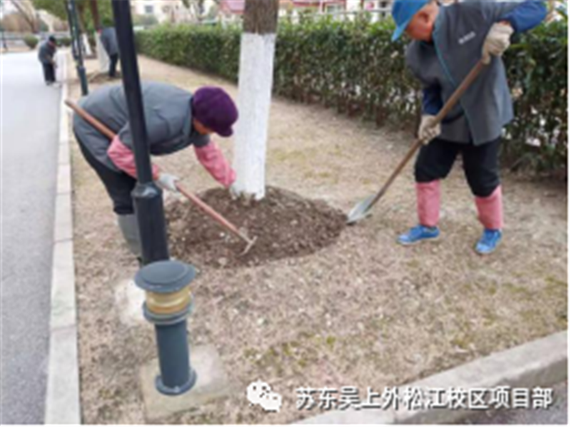 ▲树木松土施肥、草花养护