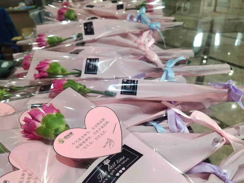 3月8日当天,早8点准时开始送鲜花。一朵朵的鲜花上贴着项目对业主送的祝福,当女神们接收鲜花时有点不知所措,但很快欣喜便溢满了双眼,收到花的女同胞们表示:“非常感谢物业想着我们大家,我们真是特别的开心,收到鲜花的惊喜无法用言语表达,总之很感谢物业。”