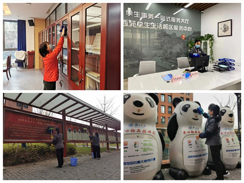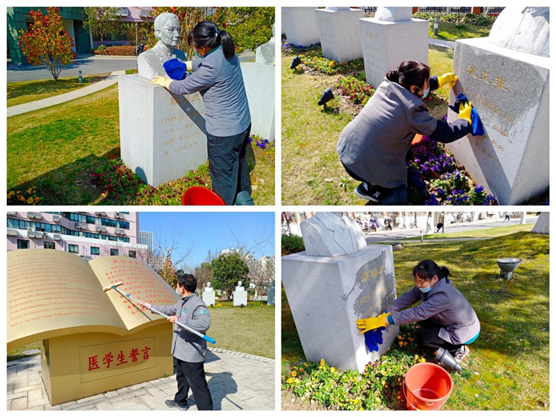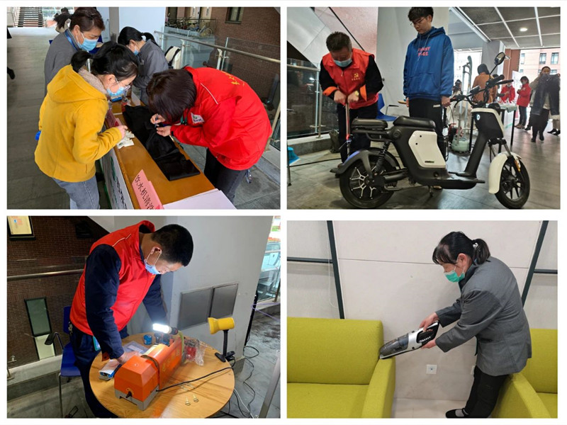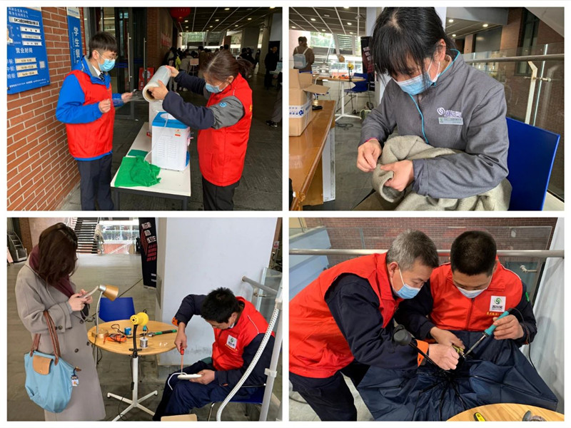 “学雷锋志愿服务小分队”先后对校内公告栏进行清洁、擦拭学校门牌、擦拭校内雕像,并在3月5日当天义务帮助学生维修小家电、清洗饮水机、缝补衣物等。